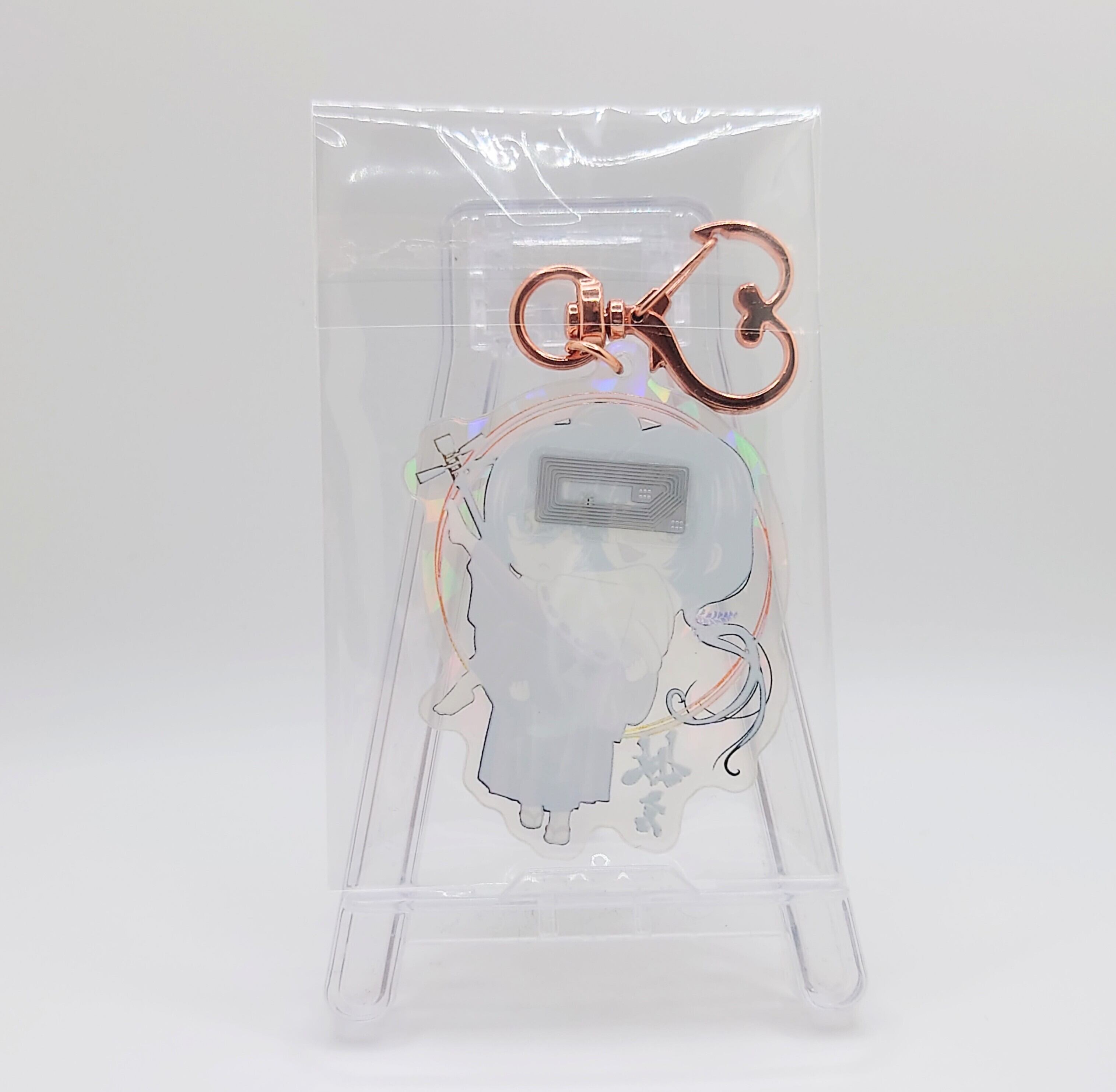 アクリルキーホルダーをスマホに翳すと、サイトへジャンプ。ブログ形式、PDF形式にて特装版の内容がお読み頂けますNFCタグ機能付き。、