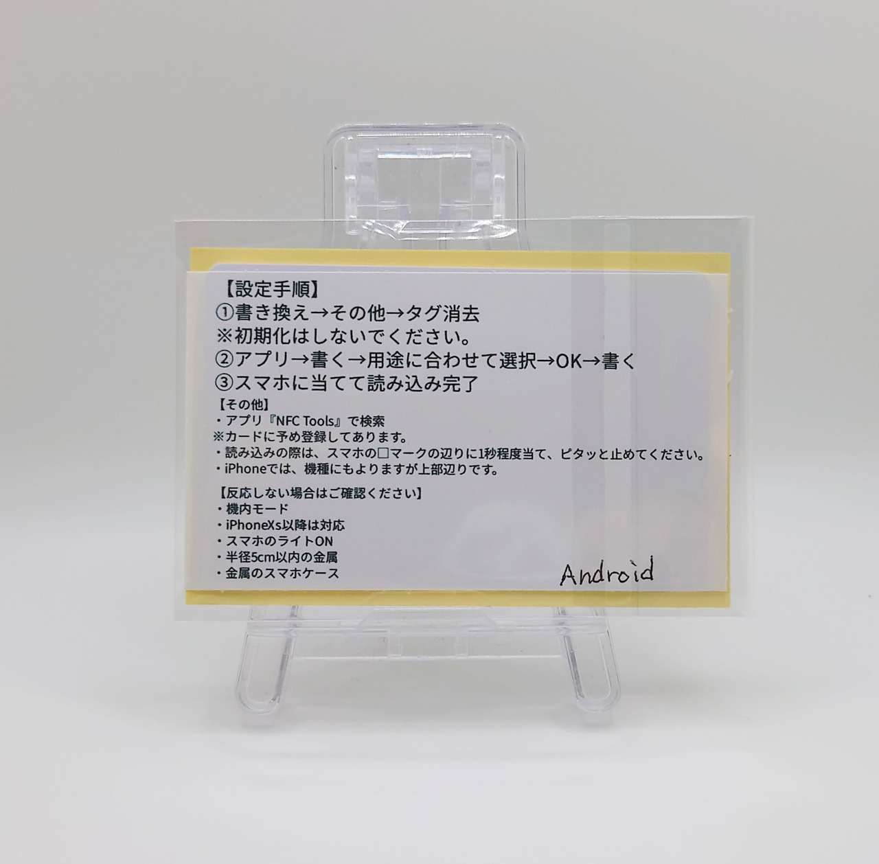 カードにアプリ情報が登録されているため、スマホで読み込んで自由に設定してください。